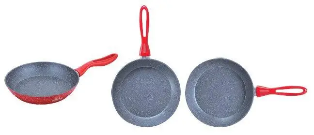 Цей компактний і функціональний набір чудового посуду з 5 предметів сподобається кожному кулінарові. До набору входять дві зручні каструлі та сковорода з високоякісним мармуровим антипригарним покриттям для супів і різних тушкованих страв. У комплекті є також дві оригінальні скляні кришки з паровідводом для посуду.
