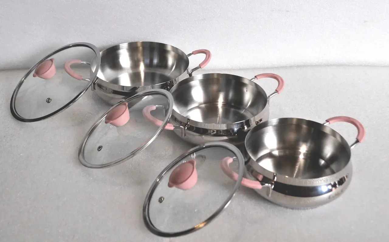 Кришки приладів виготовлені з міцного термозащищенного скла. У них є отвори для виходу пари. Ручки приладів покриті силіконом не нагріваються, є міцними і безпечними. Всі прилади забезпечені надійним кріпленням, завдяки чому посуд прослужить довгий час. Цей набір підходить для всіх видів плит. Його можна мити в посудомийній машині, легко очищається і не вимагає додаткового догляду. Завдяки масивному багатошарового дна забезпечується рівномірний розподіл тепла по всій поверхні приладів. За рахунок цього приготування їжі відбувається при малої потужності кухонної плити, що призводить до економії електроенергії та газу.