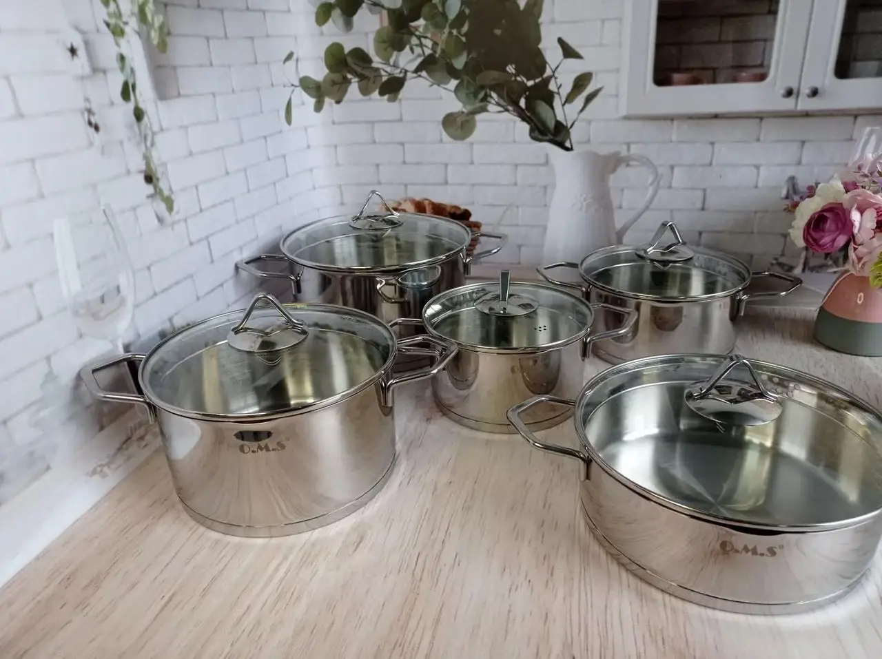 Набір посуду ( 4 каст. 2,4 л. 2,9 л. 4,3 л. 5,9 л. + сотейник 3 л. ) OMS 1057