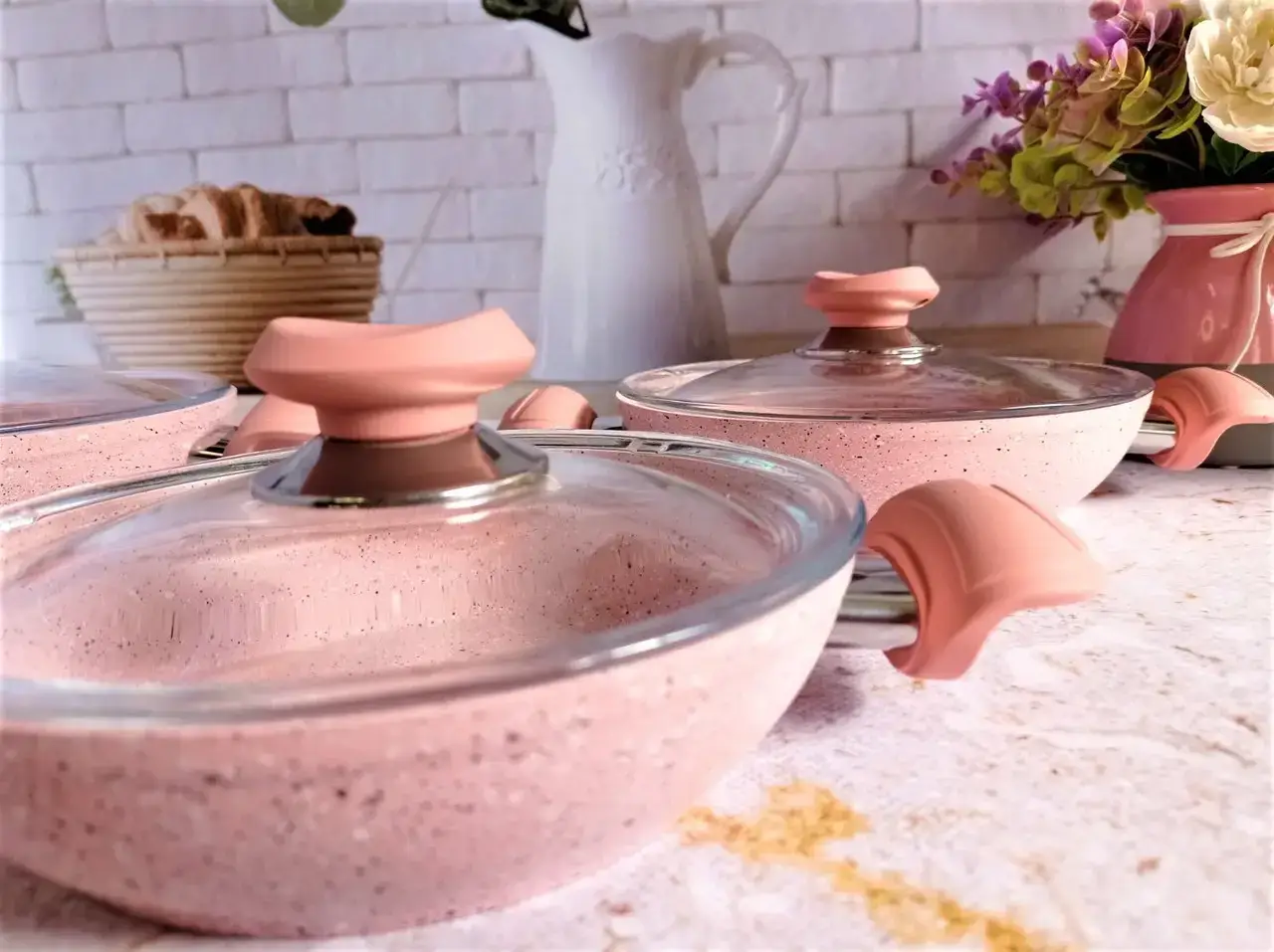 Набір посуду 6 предметів OMS 3004.04.05-Pink 18*5 (1,0 л) - 20*5 (1,25 л) - 22*5 (1,50 л)