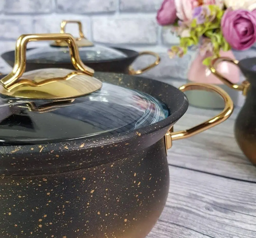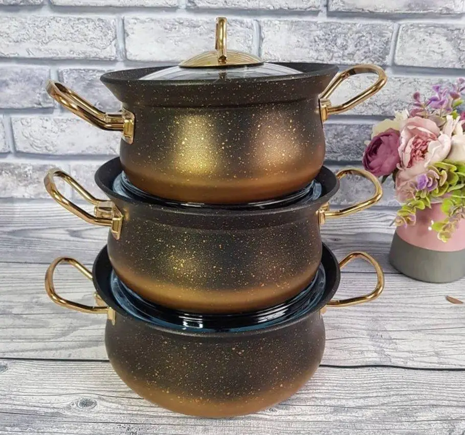 Набір посуду 6 предметів OMS 3047-Gold 16Х9,5 см / 1,7 л. 18Х10см / 2,4 л. 20Х11 см / 3 л