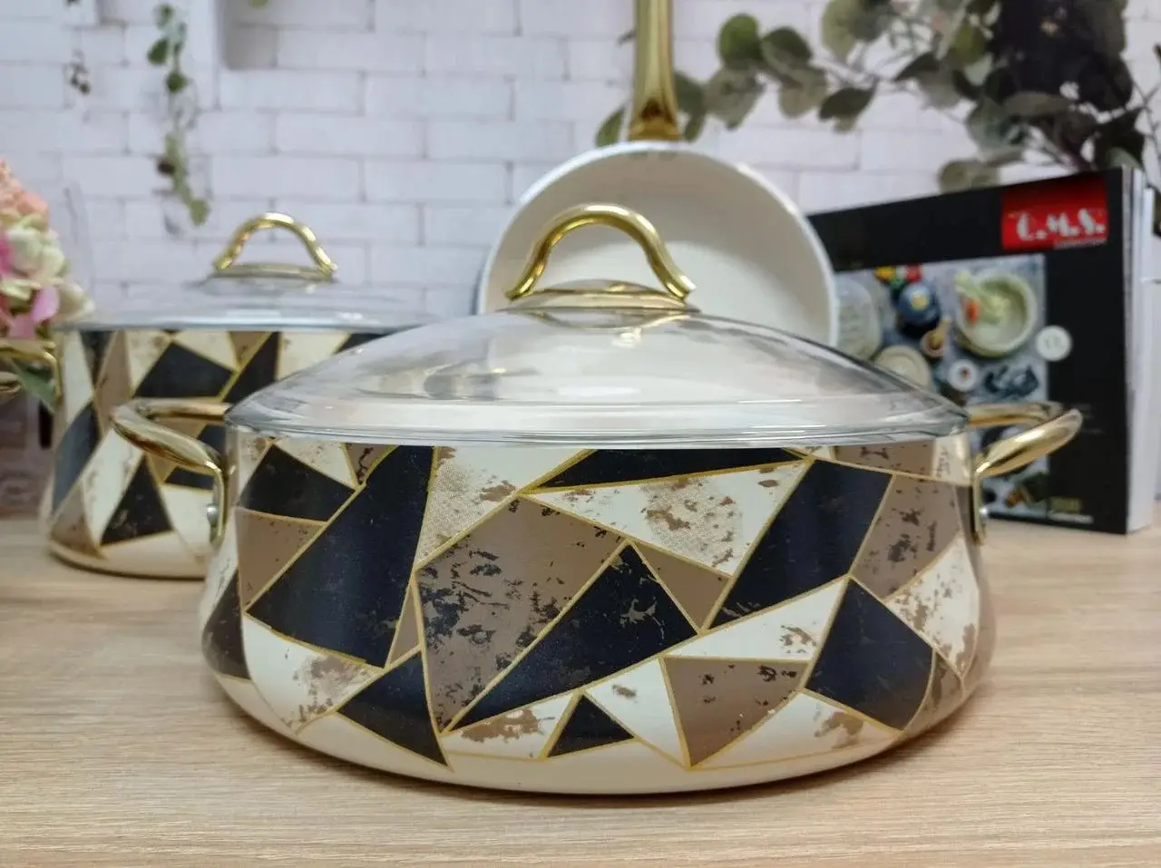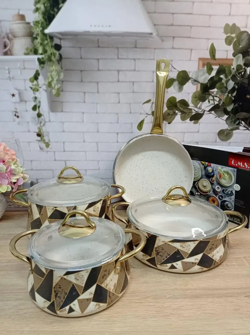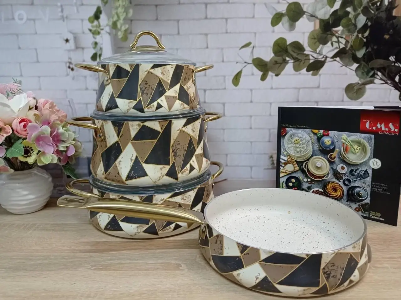 Набір посуду 7 предм. OMS 3053 brown Origami ( 3 каст. 2,4 л. 3,8 л. 4,5 л. + сотейник 2,8 л.)