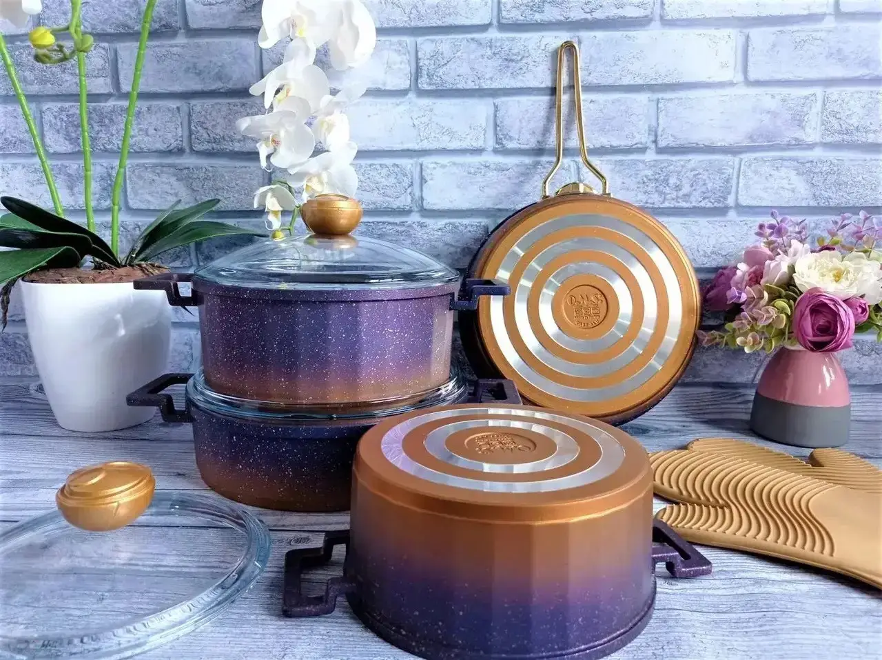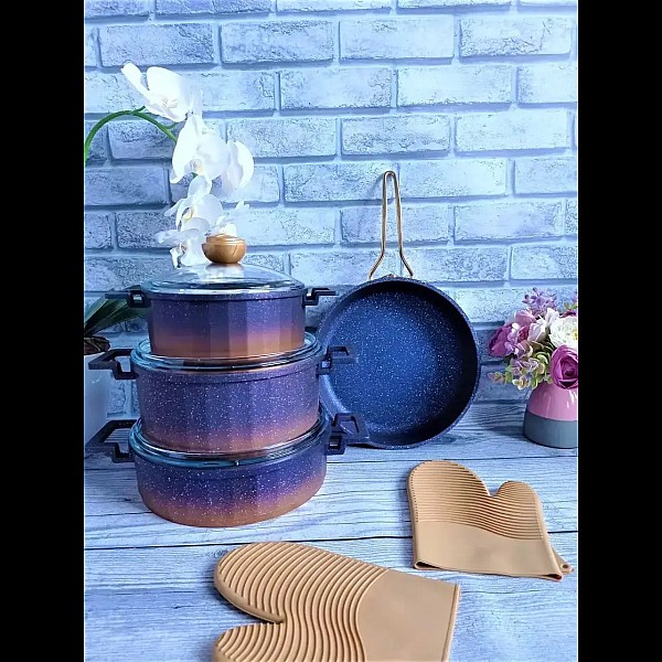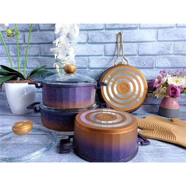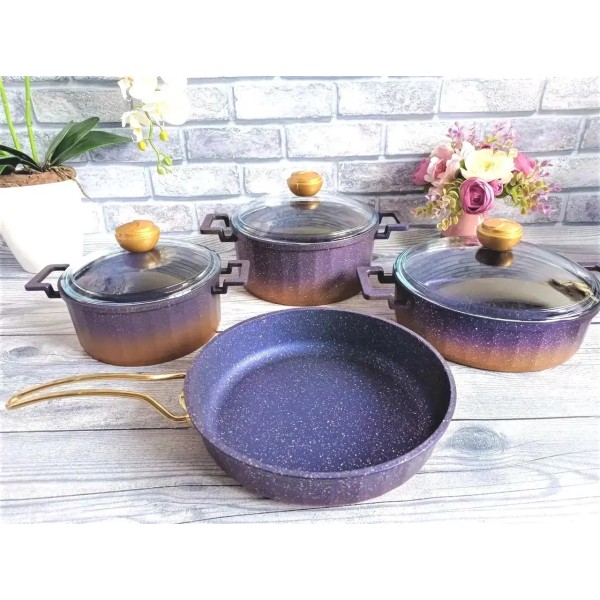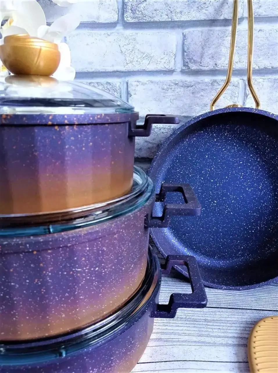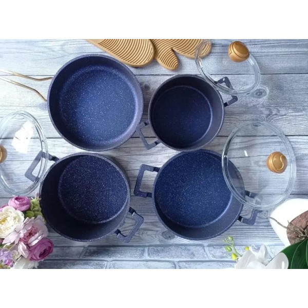 Набір посуду 7 предметів OMS 3033-Blue 20Х9,50 см (2,5 л); 24Х11см (4,2 л); 26Х7,5 см (3,75 л); СКОВОРОДА 26Х6 см (2,60 л)