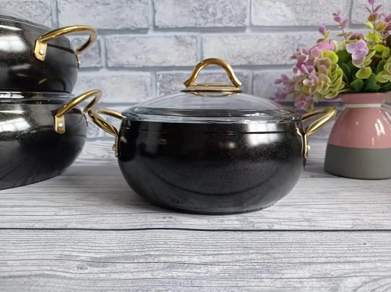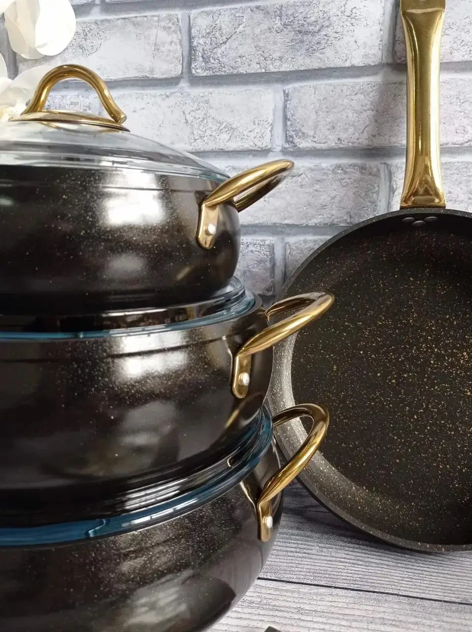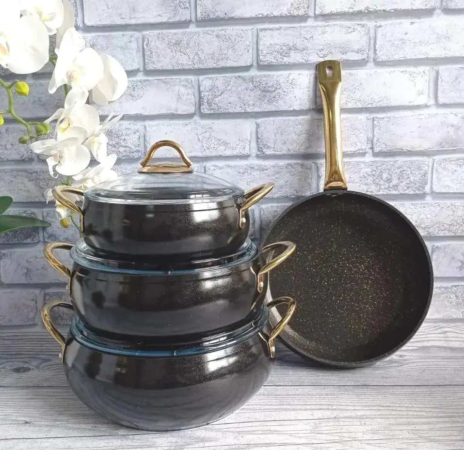 Набір посуду 7 предметів OMS 3039-Black 20Х9 см / 2,50 л. 24Х10,5см / 4,5 л. 26Х11 см / 5,7 л. СКОВОРОДА 26Х7 см / 2,80 л.