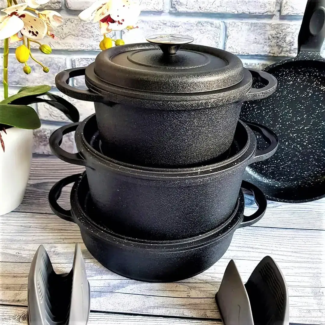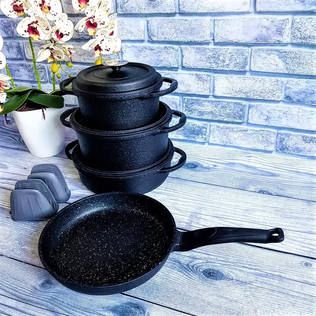 Набір посуду 7 предметів OMS 3050-Black 20Х10 см / 2,50 л. 24Х12см / 4,3 л. 26Х7,5см / 3,4 л. СКОВОРОДА 26Х5 см / 2,4 л