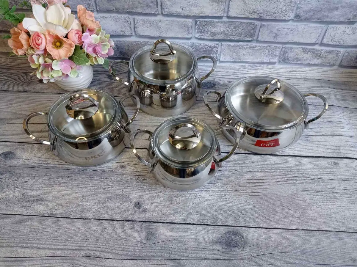 Набір посуду каструлі з кришками 14 см – 1,8л, 16 см – 2,4л, 18 см - 3,6л, Сотейник 20 см - 3,1л OMS 1100