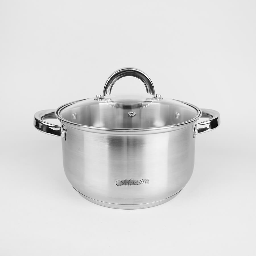 Набір каструль Maestro MR 2120-6L це скорочений варіант набору посуду Maestro MR 2120. Набір Maestro MR 2120-6L входять лише три каструлі об'ємом 1,5; 3 і 5 літрів плюс три скляні кришки відповідних діаметрів.