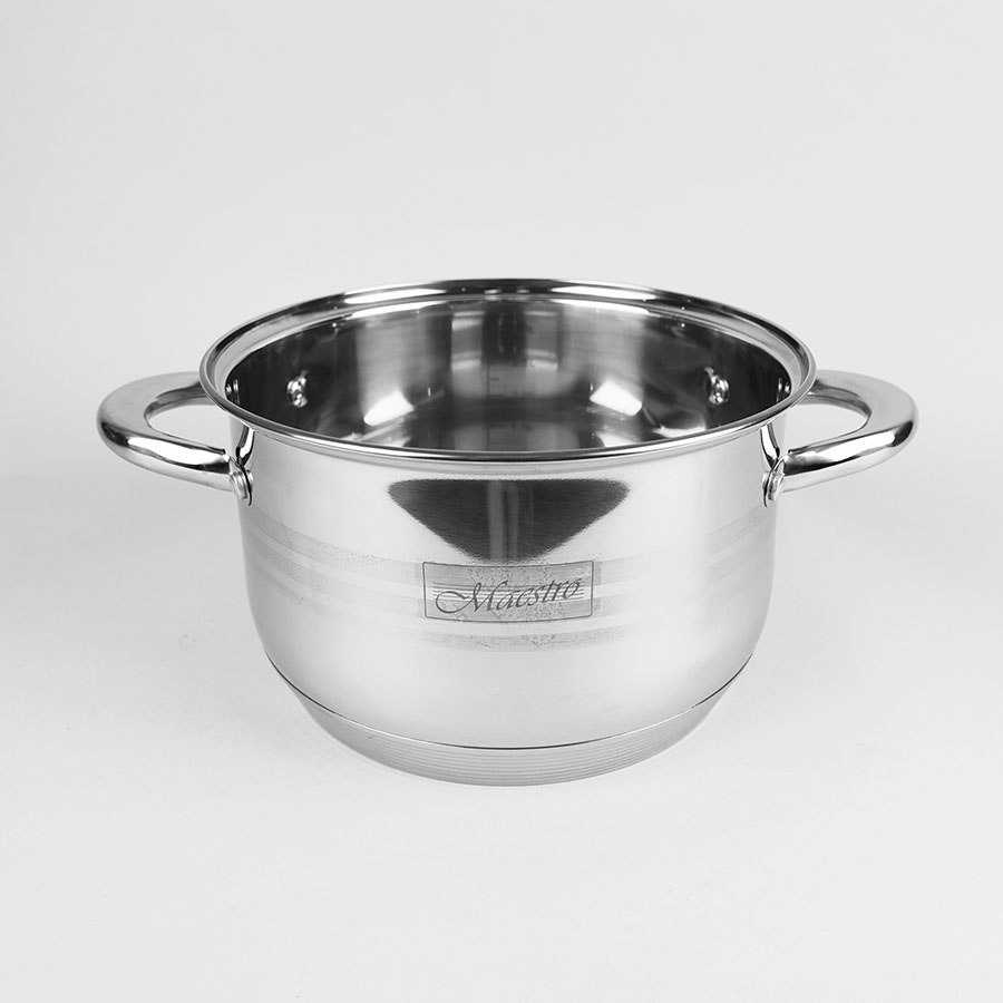 Maestro MR3513-6M це набір з 3х каструль, об'ємом 2,1/2,9/3,9 літрів. Каструлі виготовлені із високоякісної нержавіючої сталі. Мають багатошарове термоакумулююче дно, що підходить для всіх типів джерел тепла, включаючи індукцію. Товста стінка сприяє більш швидкому та рівномірному прогріву вмісту каструлі. Ручки кріпляться надійним кріпленням. Усі каструлі середнього розміру, тому підійдуть більшості сімей.