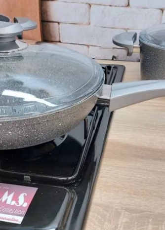 Зносостійкий та привабливий зовні посуд від турецького виробника з присутністю антипригарного гранітного покриття. Складається з трьох каструль із кришками із термостійкого скла та сковороди. Товщина стін ємностей становить 4 мм. Додаткову зручність у використанні створюють бакелітові ручки.