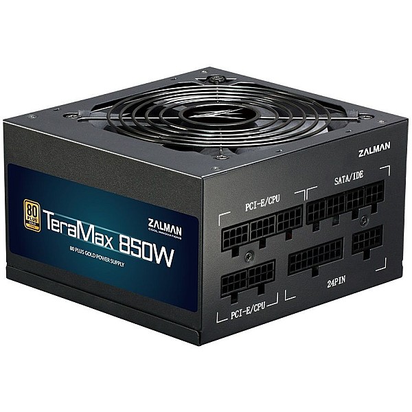 Блок питания Zalman TERAMAX (850W) >90%, 80+ Gold, 120mm, 1xMB 24pin(20+4)+10pin, 2xCPU 8pin(4+4), 3xMolex, 12xSATA, 6xPCIe 8pin(6+2), Full