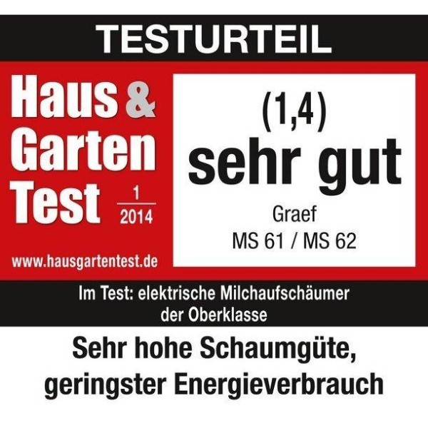 Модель Graef MS 62 имеет внутренний индикатор, который поможет вам определить сколько молока потребуется для того, чтобы приготовить 2 или 3 чашки отличной пенки. После того, как ваша пенка будет готова, аппарат автоматически отключится для экономии электроэнергии. К тиому же это продлит срок службы прибора. Вспениватель имеет прозрачную крышку, так что вы сможете понаблюдать за самим процессом приготовления пенки. Кроме этого, вы можете готовить в нем быстрорастворимые напитки без их вспенивания.