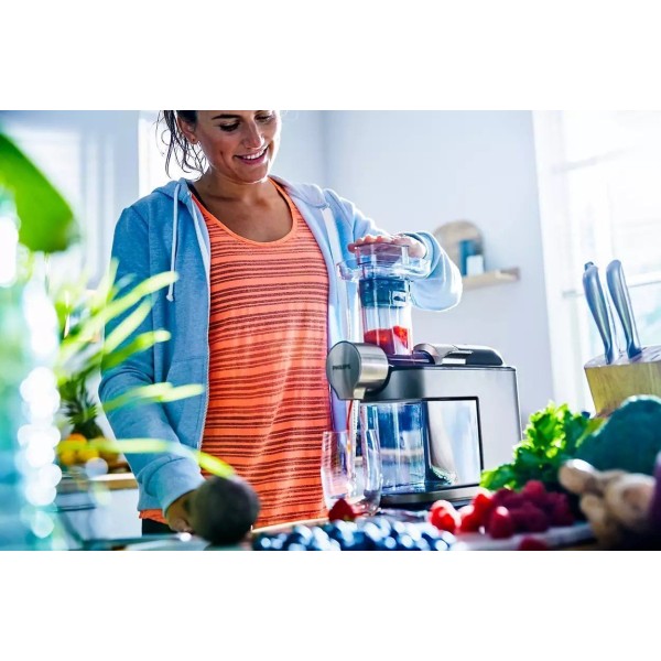 Инновационная технология MicroMasticating от Philips раскрывает клетки фруктов и овощей, обеспечивая максимальную экстракцию питательных веществ. Благодаря широкой камере подачи время подготовки ингредиентов сокращается. После приготовления сока все детали можно просто промыть водой.