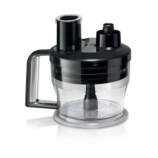 Многофункциональность аппарата дает возможность 9 насадками и 2 пластиковыми чашами, объёмом 1,24 и 0,8 л., а точное отмеривание компонентов выполняется мерным стаканом с крышкой.