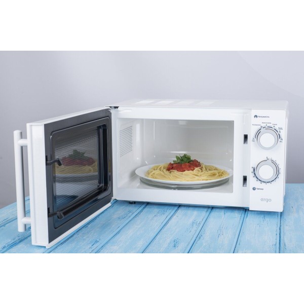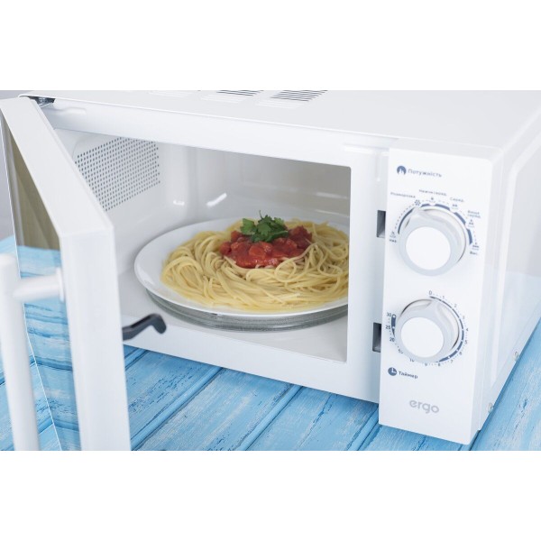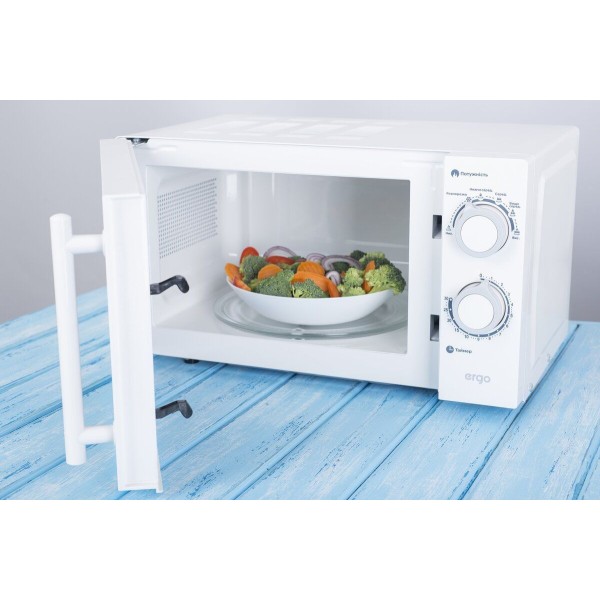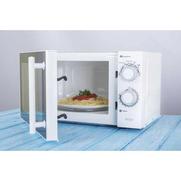 Мощности в 700 Вт достаточно для точного контроля равномерного разогрева и разморозки в 6 режимах. Запрограммируйте удобное для вас время работы микроволновой печи ERGO EM-2075, используя функцию таймера, и занимайтесь своими делами, а о готовности пищи вам сообщит сигнал отключения.