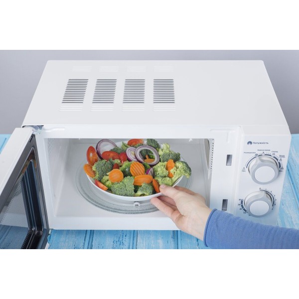 Внутренний объем в 20 литров при оптимальных габаритах, а также большой поворотный стол диаметром 24,5 см отлично подойдет для разогрева и приготовления блюд в посуде любого размера.