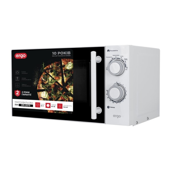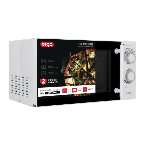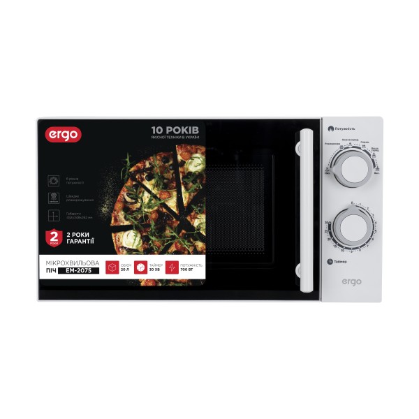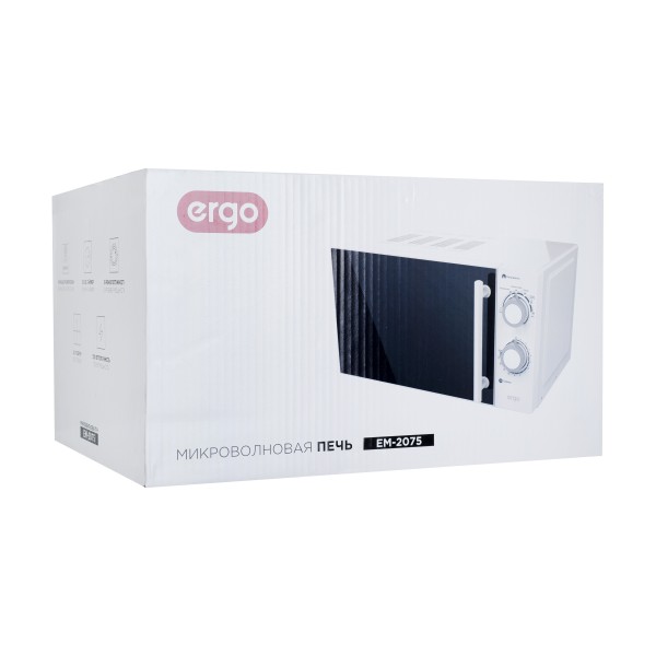 Микроволновая печь ERGO EM-2075 - отличный выбор для любителей практичных решений в дизайне и функционале бытовой техники. Простое и понятное механическое управление и полноценный спектр всех необходимых режимов превращают ERGO EM-2075 на незаменимую помощницу каждой хозяйки.