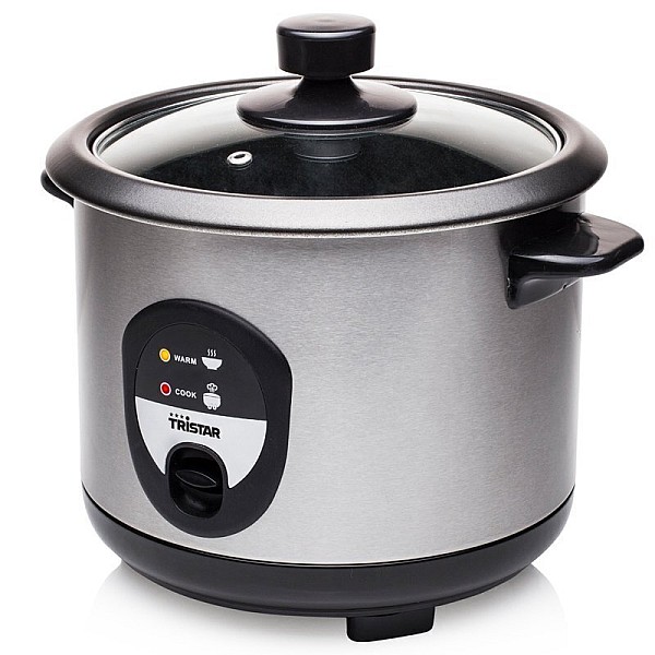 Рисоварка Tristar имеет антипригарное покрытие чаши; две автоматические программы; понятное кнопочное управление; функцию поддержания температуры. С помощью данного прибора вы можете с легкостью приготовить вкуснейший рассыпчатый рис, при этом нет необходимости нести кулинарную вахту. Достаточно загрузить крупу, налить воды и добавить специи по вкусу.