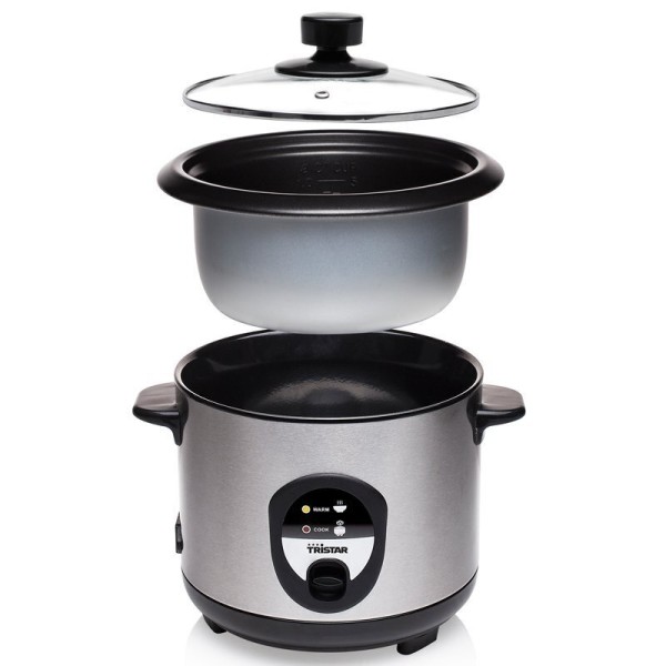 Рисоварка Tristar RK-6126 выполнена из нержавеющей стали. и термостойкого корпуса, поможет вам без особых усилий приготовить рис любого вида. Она оснащена лампой с выключателем on/off, которая оповестит Вас о готовности продукта, а так же имеет функцию поддержания температуры, мерный стакан и ложку. Рисоварка имеет прозрачную съемную крышку оснащенную отверстием для выпуска пара и располагает защитой от перегрева.