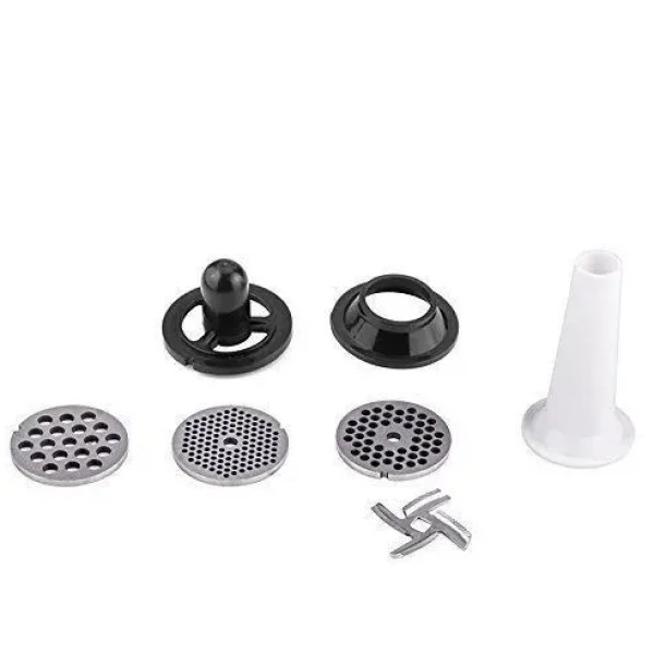 Комбайн выполнен из прочных материалов, верх ― плотный пластик, чаша для замеса теста выполнены из нержавеющей стали, мясорубка и все аксессуары из прочного сплава металла, чаша блендера выполнена из толстого стекла. В комплекте ― стандартный набор насадок для мясорубки, крюк для замеса, насадка для взбивания и для непосредственного замеса теста.