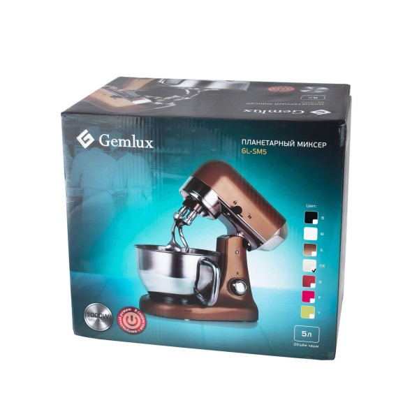 Настольный планетарный миксер Gemlux GL-SM5CR предназначен для замеса дрожжевого и бездрожжевого теста различной вязкости, взбивания яиц, сливок, кремов и муссов, приготовления пюре, фарша и т.п. Оборудование имеет восемь скоростей вращения мешалки и режим «пульс» (кратковременное включение на максимальной мощности). В комплект поставки входят: