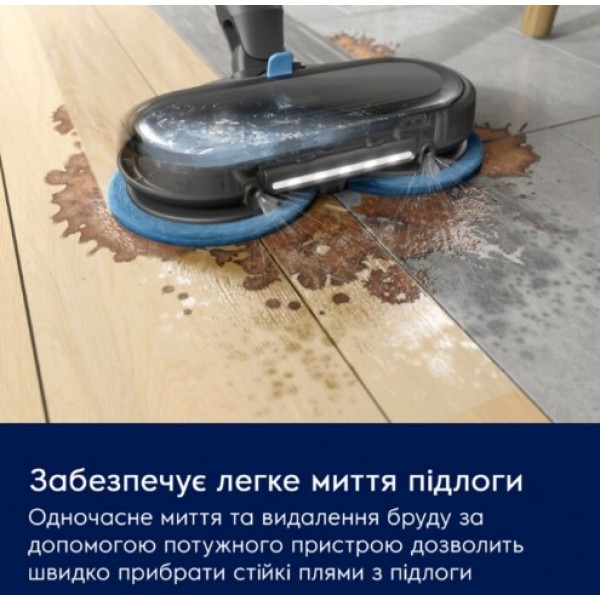 Легкое удаление разливов благодаря моторизированной насадке PowerPro mop. Вращающиеся колодки легко справляются со стойкими загрязнениями и пятнами на твердом полу. Испытайте новый уровень удобства влажной уборки одной мощной насадкой.