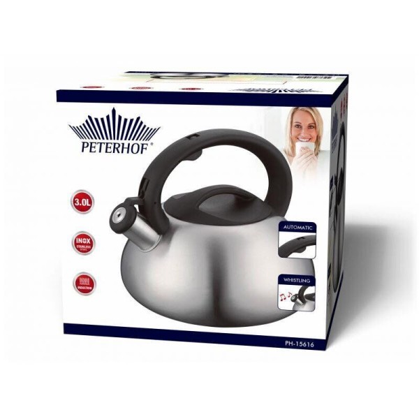 Чайник со свистком Peterhof PH-15616 претендует на то, чтобы стать сердцем вашей кухни. Этот замечательный чайник готов поделиться с вами своим теплом.