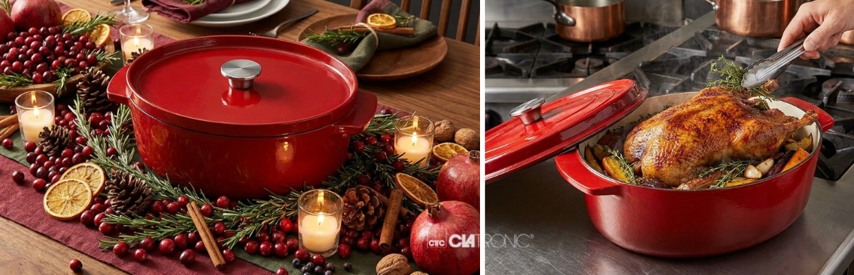 Гусятница чугунная с крышкой KitchenAid, 30 см, 5,6 л, красная (CC006063-001)