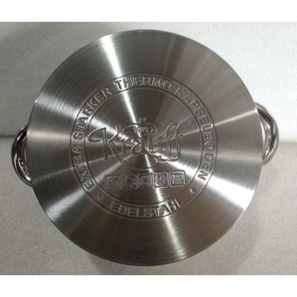 Данный комплект нержавеющей посуды имеет особенность в виде наличия термоаккумулирующее дна, оно создана для равномерного распределения тепла, с помощью чего производится правильное приготовление еды и сохранения всех ее питательных характеристик.