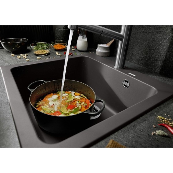 Вместительная чаша обеспечивает возможность выполнять одновременно несколько действий внутри и возле мойки