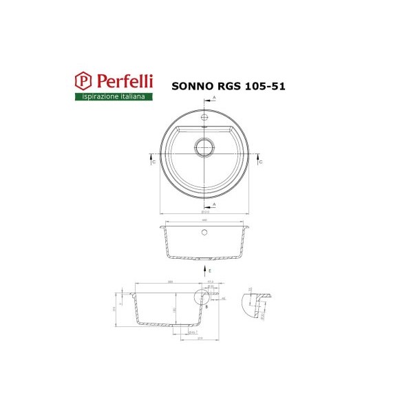 Мойка кухонная гранитная Perfelli SONNO RGS 1051-51 GREY METALLIC