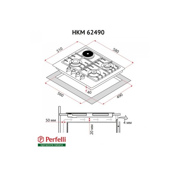 Поверхность комби 3+1 Perfelli HKM 63490 WH