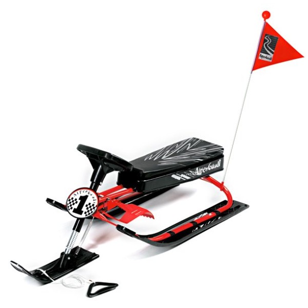 Удобное сидение из нескользящего материала,прочная стальная конструкция. Система управления с амортизаторами, тормозной механизм из стали. Прочные пластиковые лыжи.