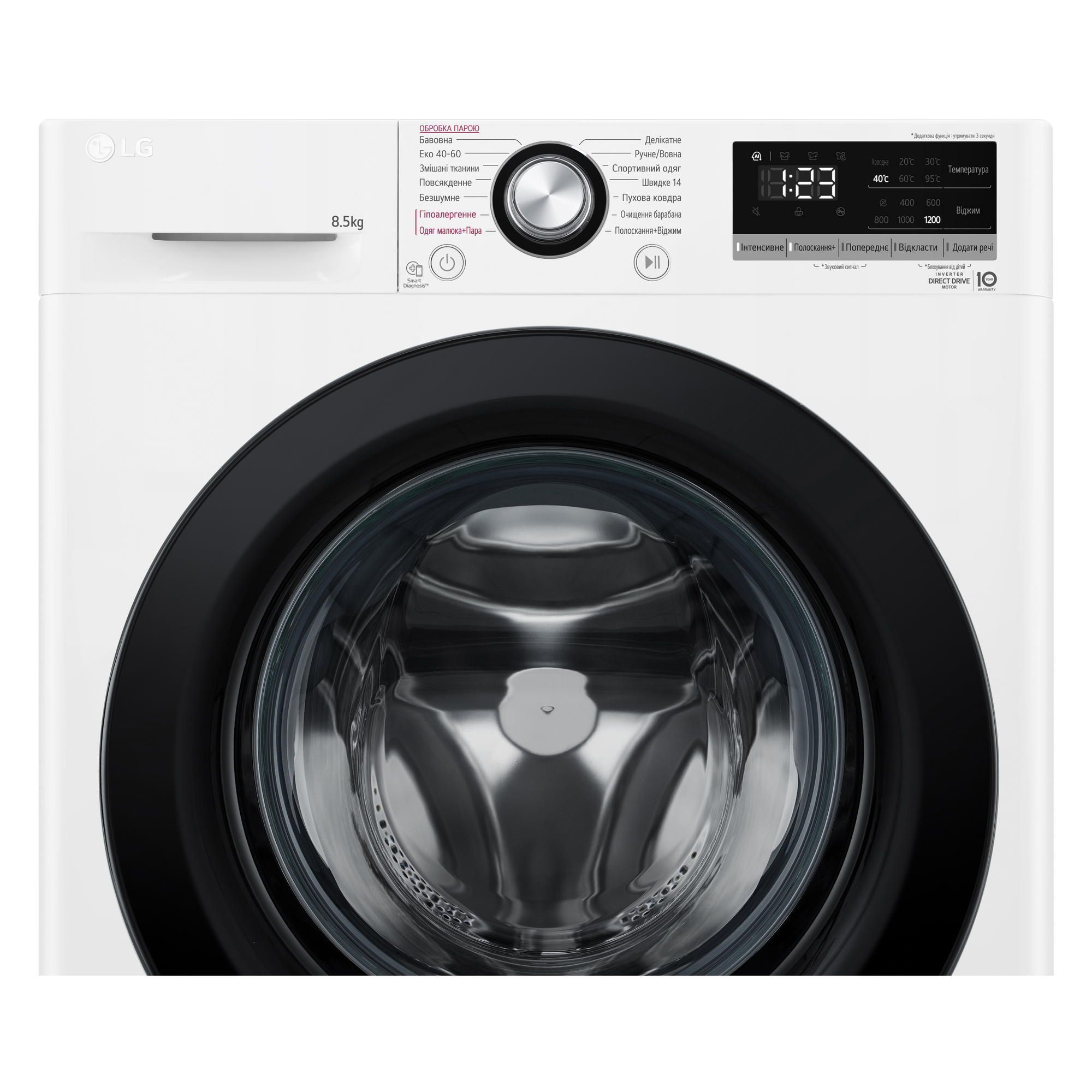Пральна машина LG фронтальна, 8,5кг, 1200, A+++, 48см, дисплей, пара, інвертор, білий