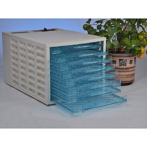 Сушіння продуктів, овочів та фруктів Хілтон (Hilton DH 09) забезпечується за рахунок їхнього примусового обдування теплим повітрям та інтенсифікується завдяки швидкому видаленню повітря з робочого об'єму за допомогою вентилятора, встановленого в основі приладу. Теплове випромінювання, що генерується теплоелектронагрівачем (ТЕНом) поглинається водою, що міститься в продукті, але не поглинається тканиною продукту, тому видалення вологи можливе при невисокій температурі (30-70 ° С), що дозволяє практично повністю зберегти вітаміни, біологічно - активні речовини природний колір аромат у продукті, що висушується, завдяки чому він може зберігатися тривалий час без погіршення якості. Сушіння для овочів та фруктів Хілтон має 8 лотків та 7 кг.разового завантаження. Сушка для овочів та фруктів Хілтон зроблена з високоякісного матеріалу, пройшла всі тести за своїми характеристиками. Купуйте Сушку для овочів та фруктів Хілтон у офіційного представника.