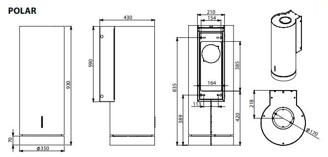 Витяжка POLAR від Falmec має ідеально циліндричну форму та простий та мінімалістичний дизайн, що робить її елегантним та інтригуючим предметом інтер'єру. Витяжка з нержавіючої сталі, пофарбована в мідний колір, оснащена освітленням та двигуном потужністю 800 м3/год.