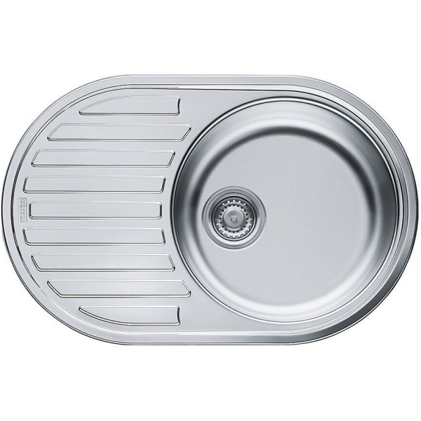 Овальная кухонна мийка Franke Pamira PMN 611i із нержавіючої сталі (матова) має розмір 770х500 мм та крило для посуду. Основна чаша діаметром 410 мм і глибиною 165 мм.