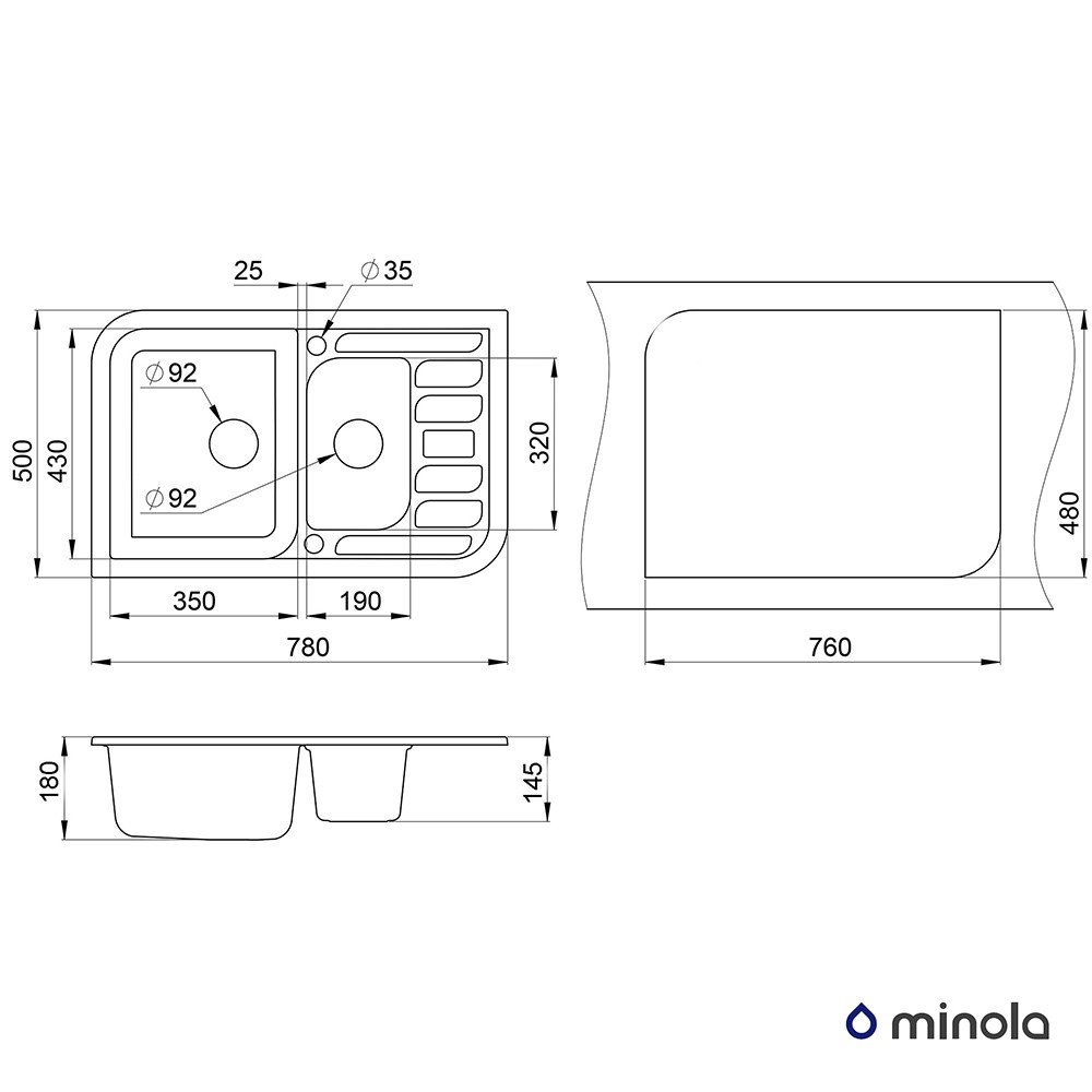 Все кухонные мойки Minola, тем не менее, имеют одну общую черту - по способу установки эти изделия врезные.