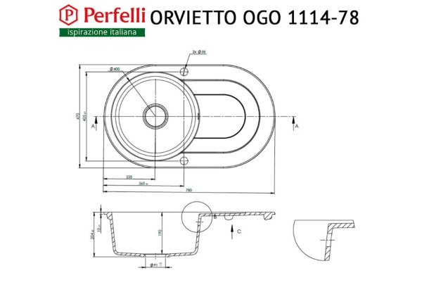 Мойка кухонная гранитная Perfelli ORVIETTO OGO 1114-78 GREY METALLIC