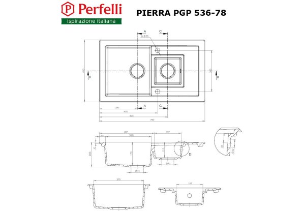Гранитные кухонные мойки Perfelli PIERRA PGP 536-78 WHITE, имеют яркий внешний вид, эксклюзивный дизайн и максимальную функциональность.