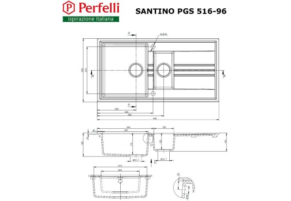 Мойка кухонная гранитная Perfelli SANTINO PGS 516-96 SAND