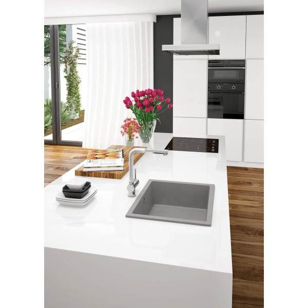 Мийка кухонна Deante Corda, граніт, квадрат, без крила, 550х460х204мм, чаша - 1, врізна, металічний сірий