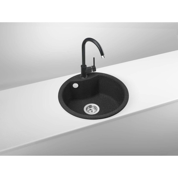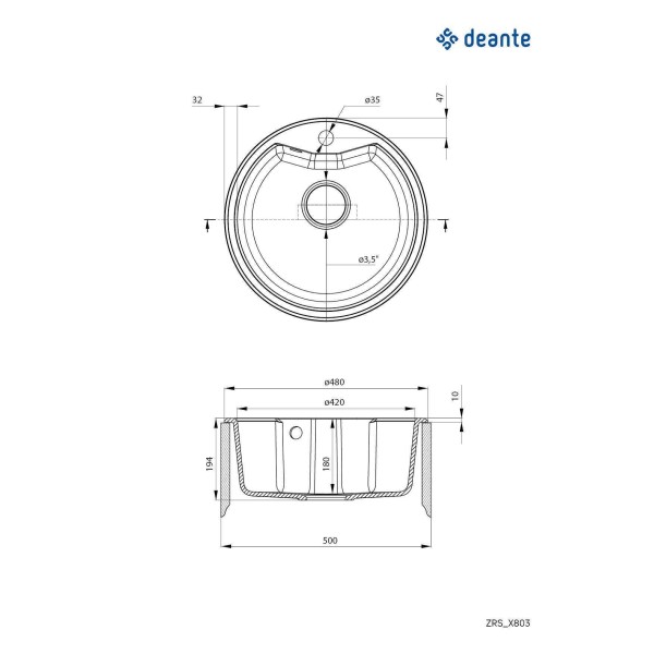 Мийка кухонна Deante Solis, граніт, коло, без крила, 480х480х194мм, чаша - 1, накладна, графіт