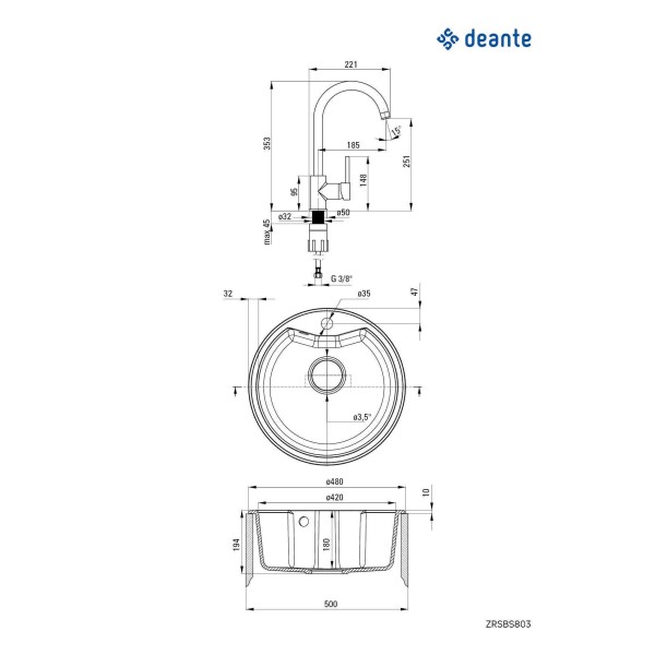 Набір для кухні Deante Solis, гранітна мийка ZRS_S803 + змішувач BEU_S62M, сірий
