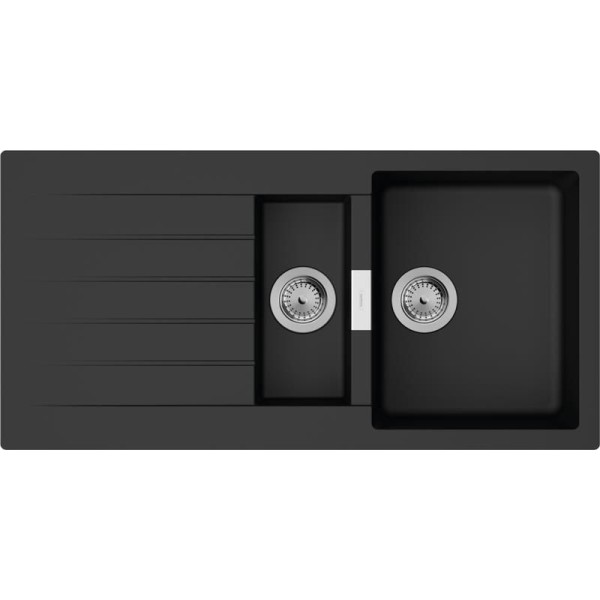 Мийка кухонна Hansgrohe S52, граніт, прямокутник, з крилом, 980х480х190мм, чаша - 1.5, накладна, S520-F530, чорний графіт