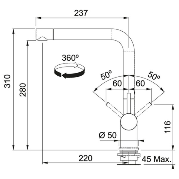 Змішувач Franke Active Plus /115.0373.820 / поворотний / одноричажний / графіт