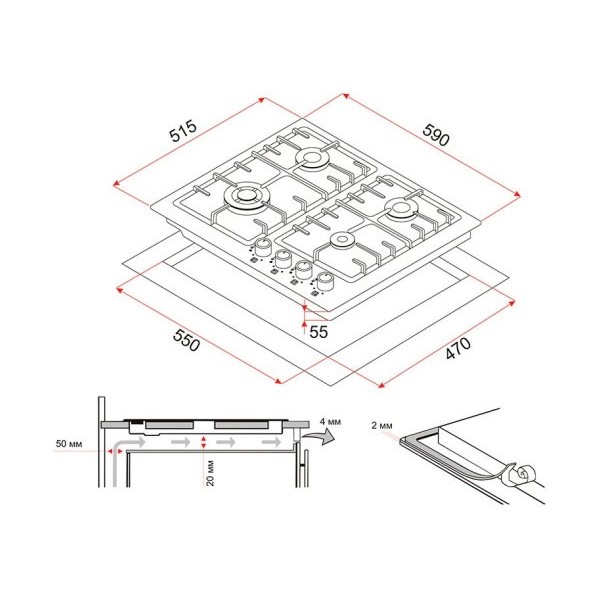 Модель оснащена 4 газовыми конфорками различной мощности для более удобного выбора температуры и следованию по тому или иному рецепту блюд.