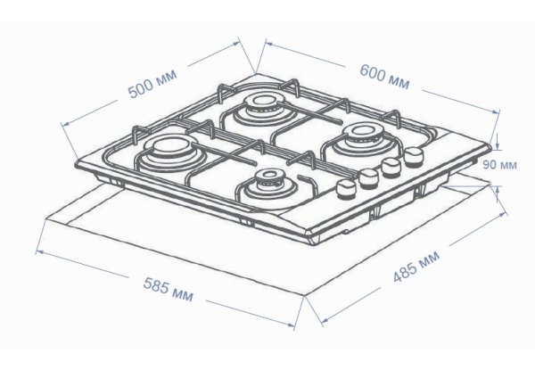 Панель обладнана чотирма конфорками із класичним розташуванням, одна підвищеної потужності та одна економічна.