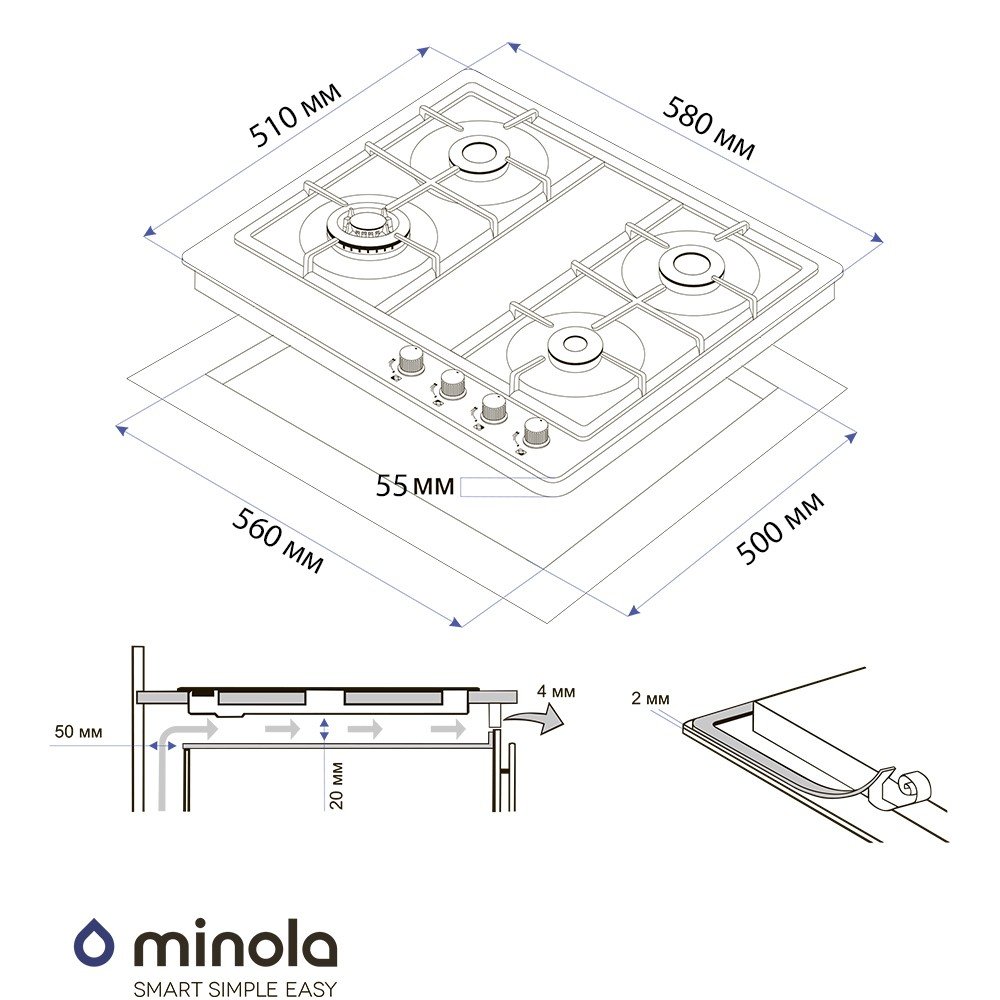 Внешность варочной поверхности Minola MGM 61221 WH ориентирована на владельца современной минималистичной кухни.