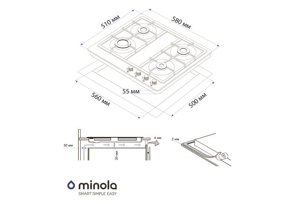 Внешность варочной поверхности Minola MGM 61421 BL ориентирована на владельца современной минималистичной кухни.