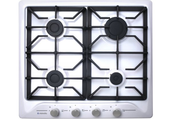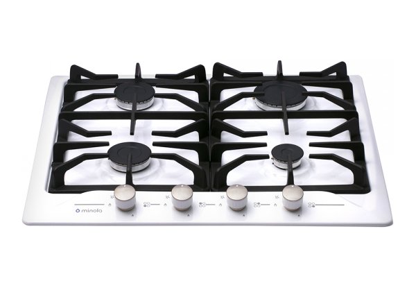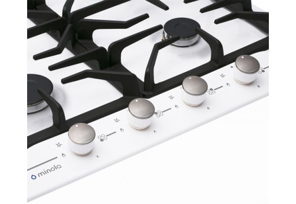 Газовая поверхность Minola MGM 614244 WH оборудована четырьмя газовыми конфорками разных размеров и мощности.